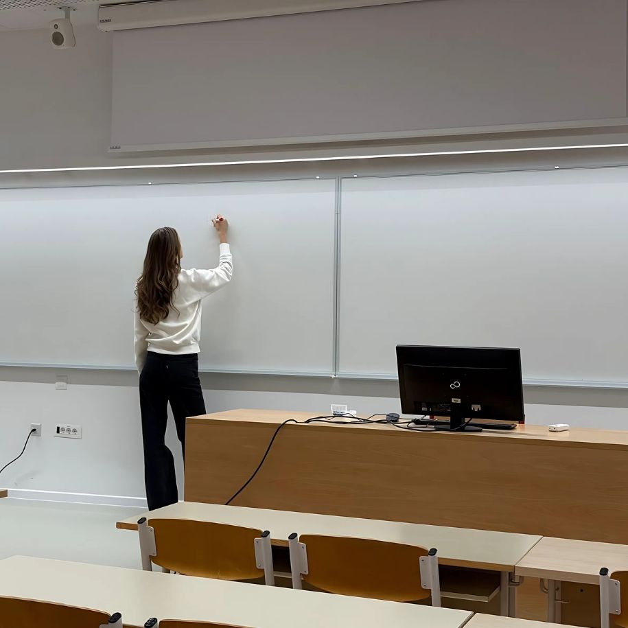 Odabrali su ploče velikih dimenzija jer omogućavaju nesmetan tok predavanja bez stalnog brisanja, a u manjim predavaonama odabrali su ploče na stalku koje se mogu pomaknuti kada nisu u upotrebi.