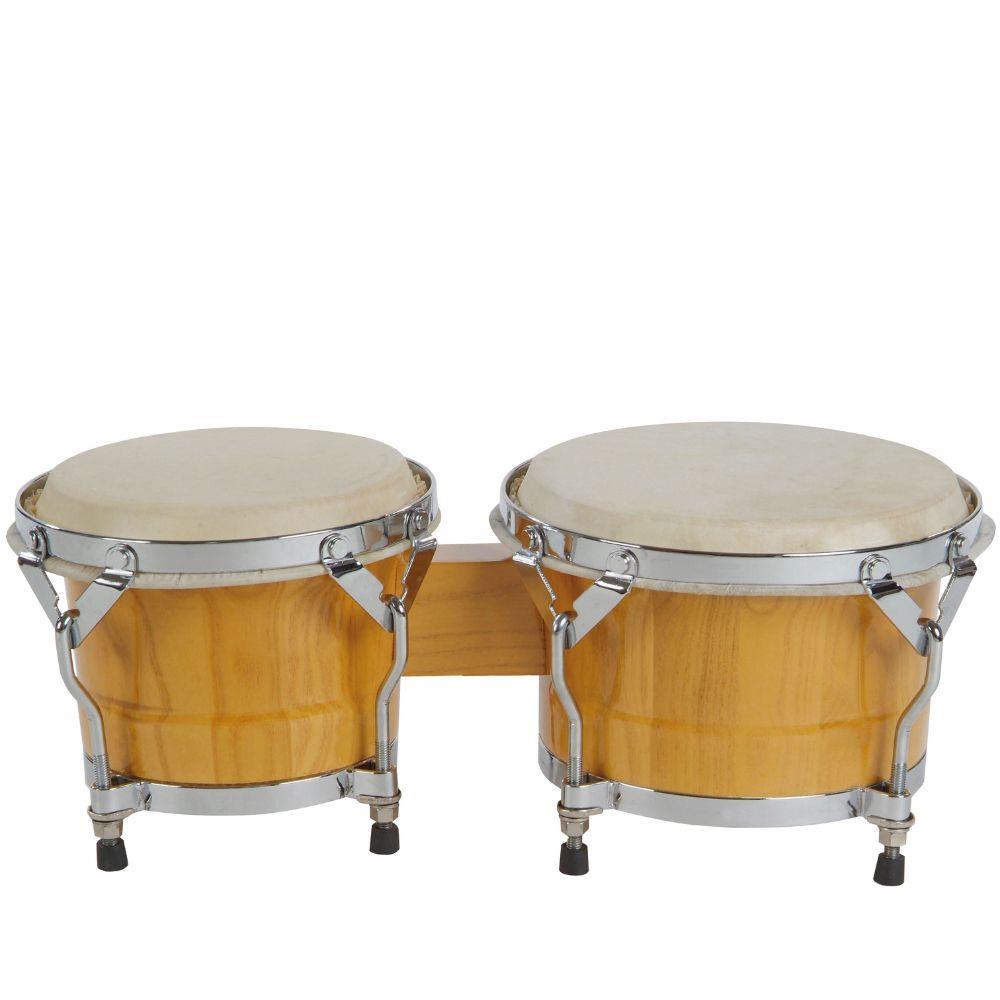 Bongo Dva spojena, drvena bubnja s kožnim membranama. Dostupni u dvije boje. 6,5" + 7,5"