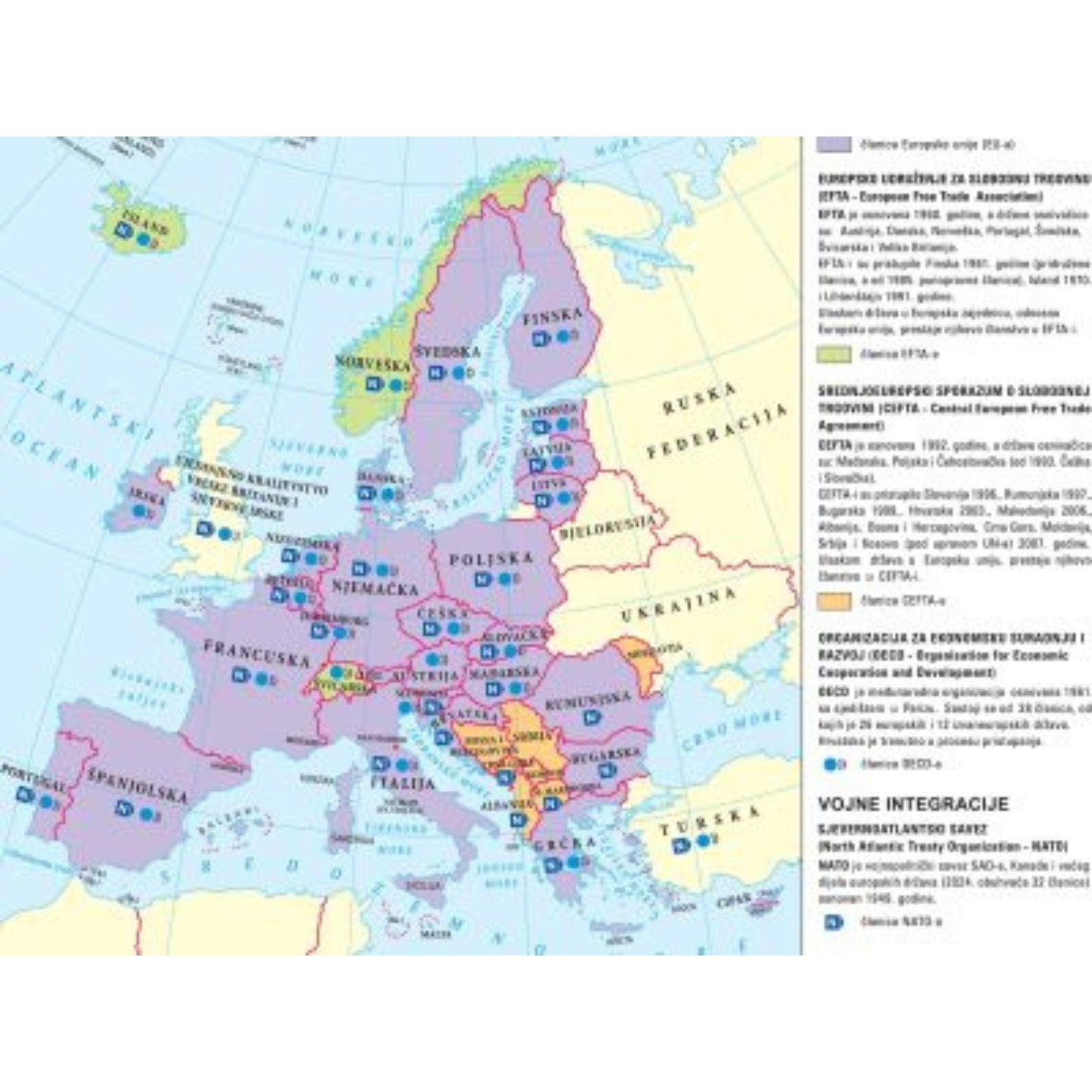 Geografska zidna karta kaširana na platno s letvicama