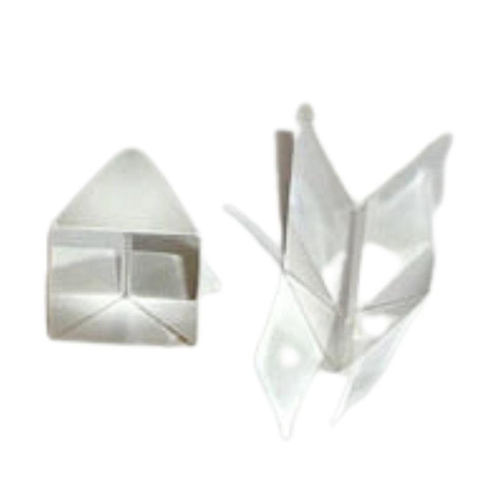 Flintova prizma je prozirna i stabilna, pogodna za laboratorijske pokuse i precizne demonstracije optičkih pojava poput loma, disperzije i spektralne analize.