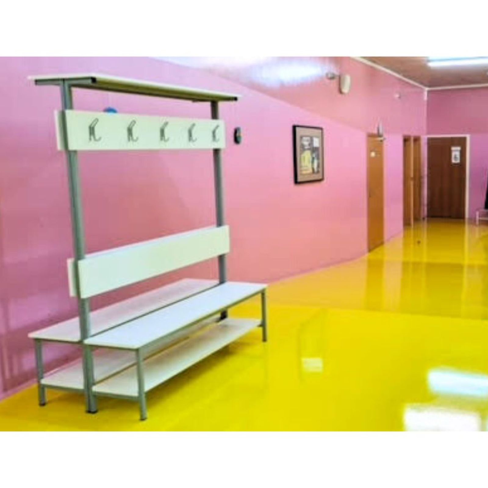 Hodnici osnovne škole s vješalicama za garderobu su funkcionalni i dinamični prostori koji reflektiraju organizaciju i svakodnevni ritam školskog života. Vješalice za garderobu u osnovnim školama su specifično dizajnirane da budu funkcionalne i sigurne za djecu. Postavljene na pristupačnu visinu kako bi ih djeca mogla lako koristiti te samostalno odlagati svoje jakne, torbe i druge osobne predmete. Pored kukica za jakne i torbe, u mnogim školama, ispod vješalica su postavljene klupe gdje djeca mogu sjediti dok obuvaju ili izuvaju cipele. Također, sigurnost je prioritet, pa vješalice imaju zaobljene rubove i sigurnosne kukice kako bi se smanjio rizik od povreda.