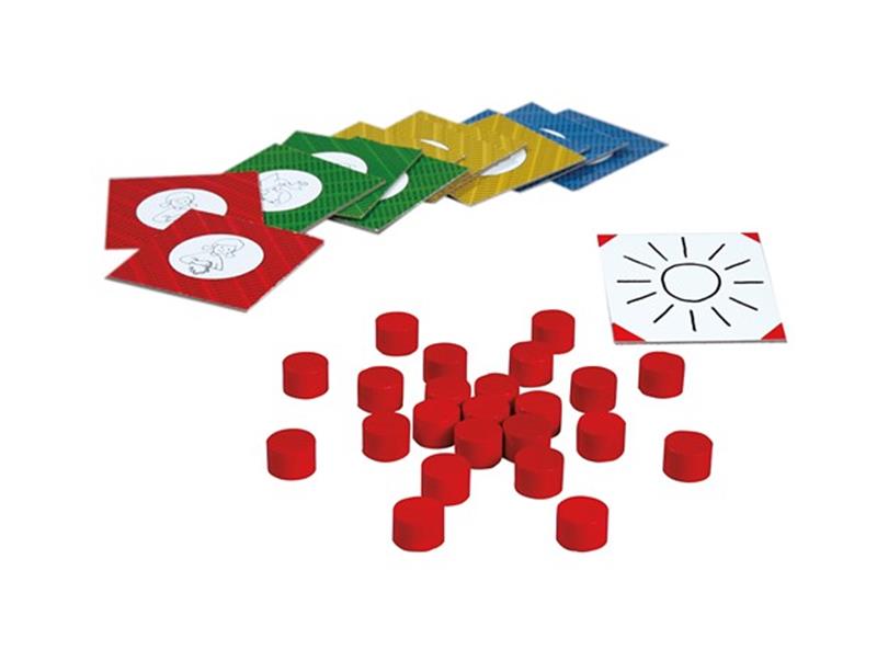 Na karticama su prikazani pojmovi koje treba ili složiti od drvenih žetona ili nacrtati ili objasniti uz pomoć što više riječi ili prikazati pantomimom. Razvija se kreativnost, mašta, razmišljanje,...