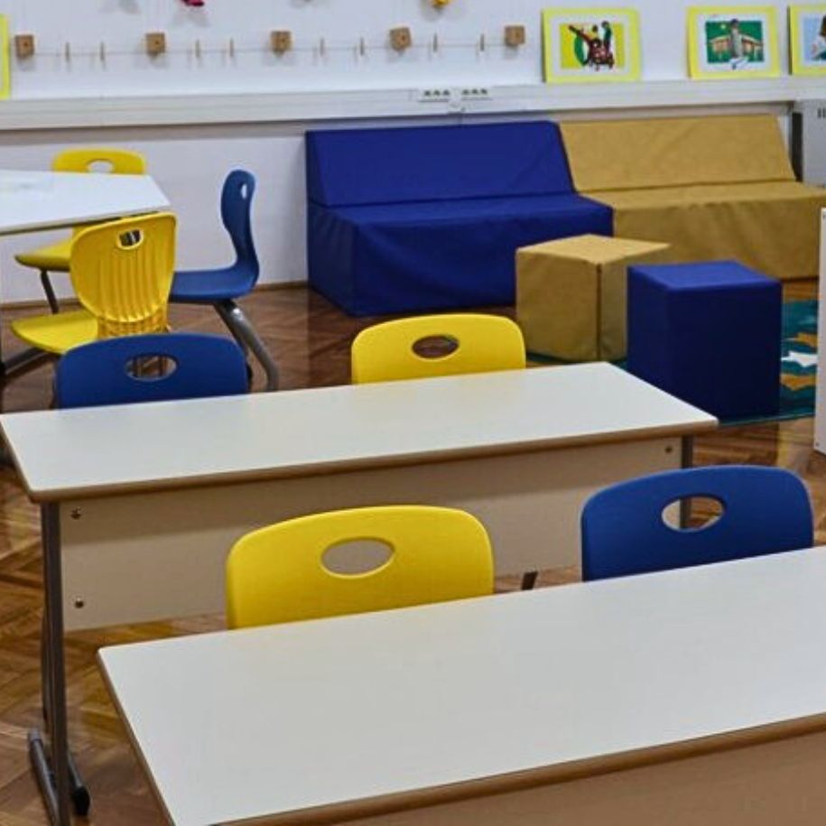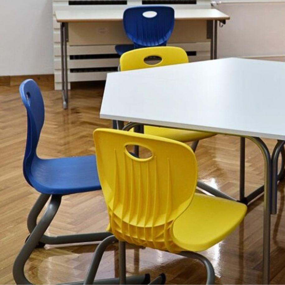 Jeste li primjetili da škole često biraju kontrast plave i žute? Vjerujemo da time postižu vedriju dinamiku prostora bez previše šarenila.