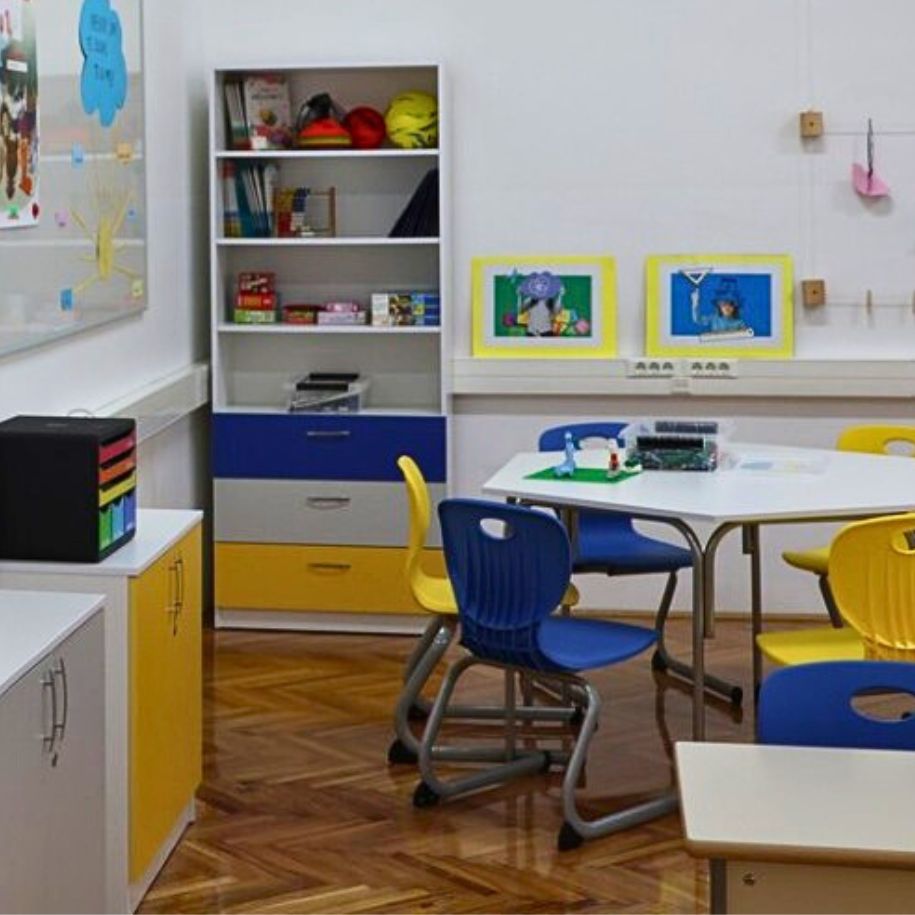 Možda vam se čini da je najlakše opremiti prazne prostorije i kupiti sve novo, ali vjerujte nije baš bilo lako izabrati iz velike ponude boja i stilova i potpuno osmisliti prostor. No to su ipak slatke brige.Birale su se boje stolova, stolica, fronti garderobnih ormarića te ormara za učionice.Odlučili su se za kombinaciju 3 boje; plava, žuta i siva.