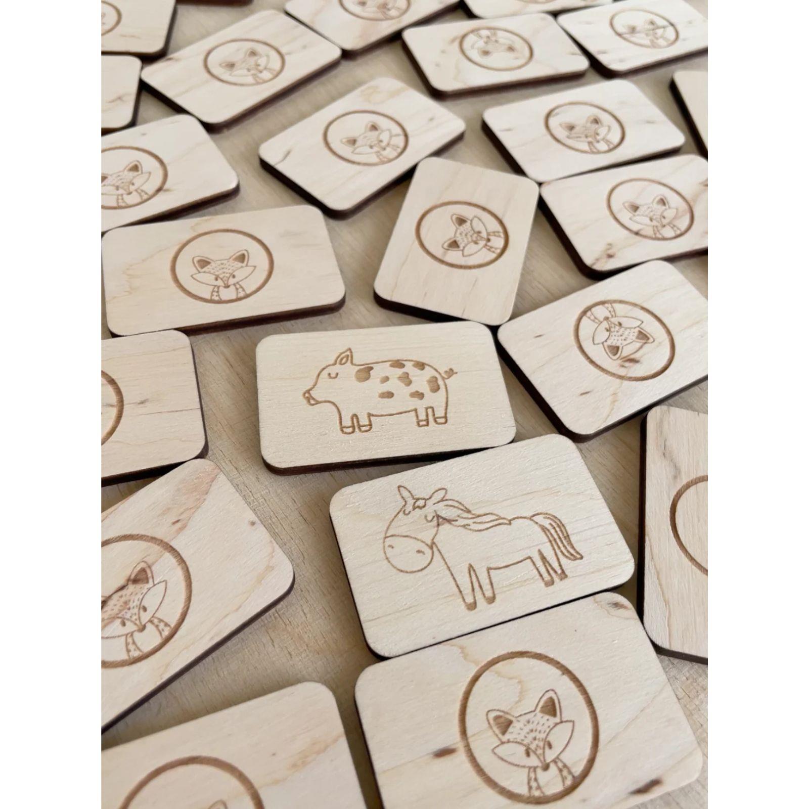 Vrećica sadrži 30 pločica (15 parova) kojih možete količinski smanjiti ako je dijete mlađe dobi te mu je predviđeni sadržaj pločica prevelik. Ovom igrom osim šta vježbamo pamćenje, učimo i prepoznati i imenovati ove preslatke životinjice.