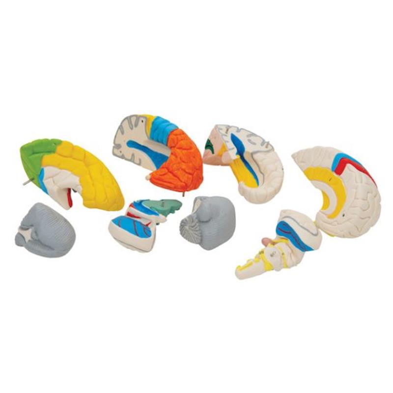 Ovaj luksuzni mozak je medijalno podijeljen. Na desnoj polovici ovog mozga označeno je sistematskogrupiranje u boji i prikaz cerebralnog režnja.