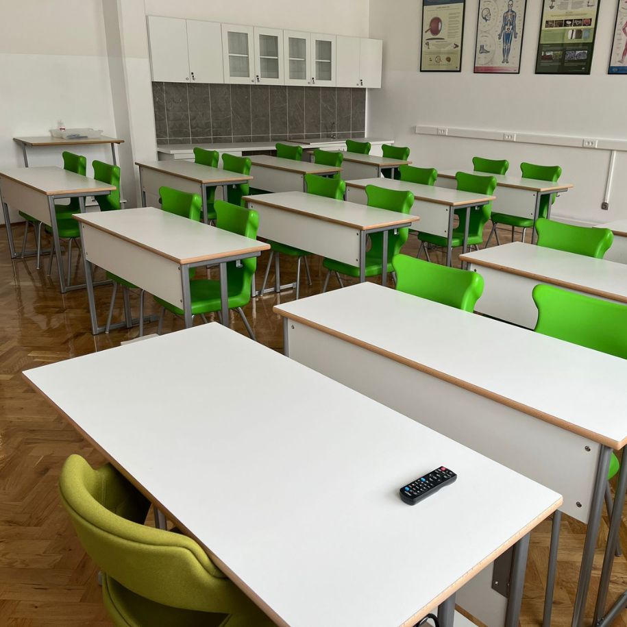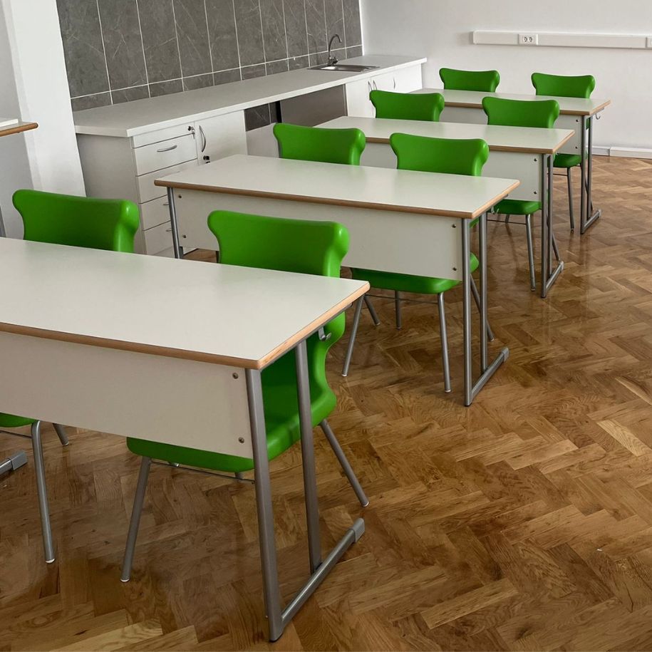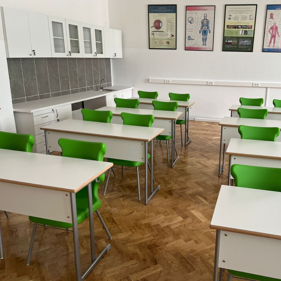 Trenutno je kabinet biologije glavna zvijezda škole. Osim učeničkih klupa i popularnih zelenih Vita stolica, odlučili su se i za veliki, moderno dizajniran radni prostor uza zid koji se naručuje po mjeri.