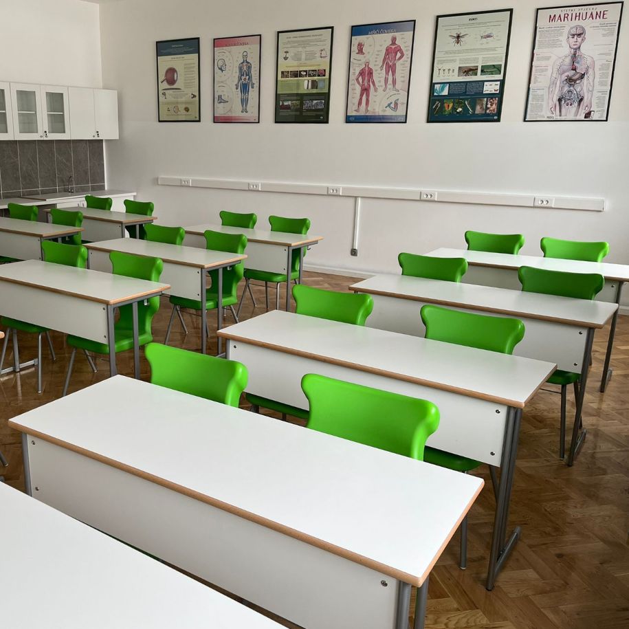 Oprema koja je odabrana u opremanju kabineta biologije je: Radni prostor uz zid rađen po mjeri, učeničke klupe i katedra iz programa Sofia, učeničke stolice Vita i konferencijski stolac HT1032. Sve navedene proizvode možete pronaći i pogledati u našoj web trgovini.