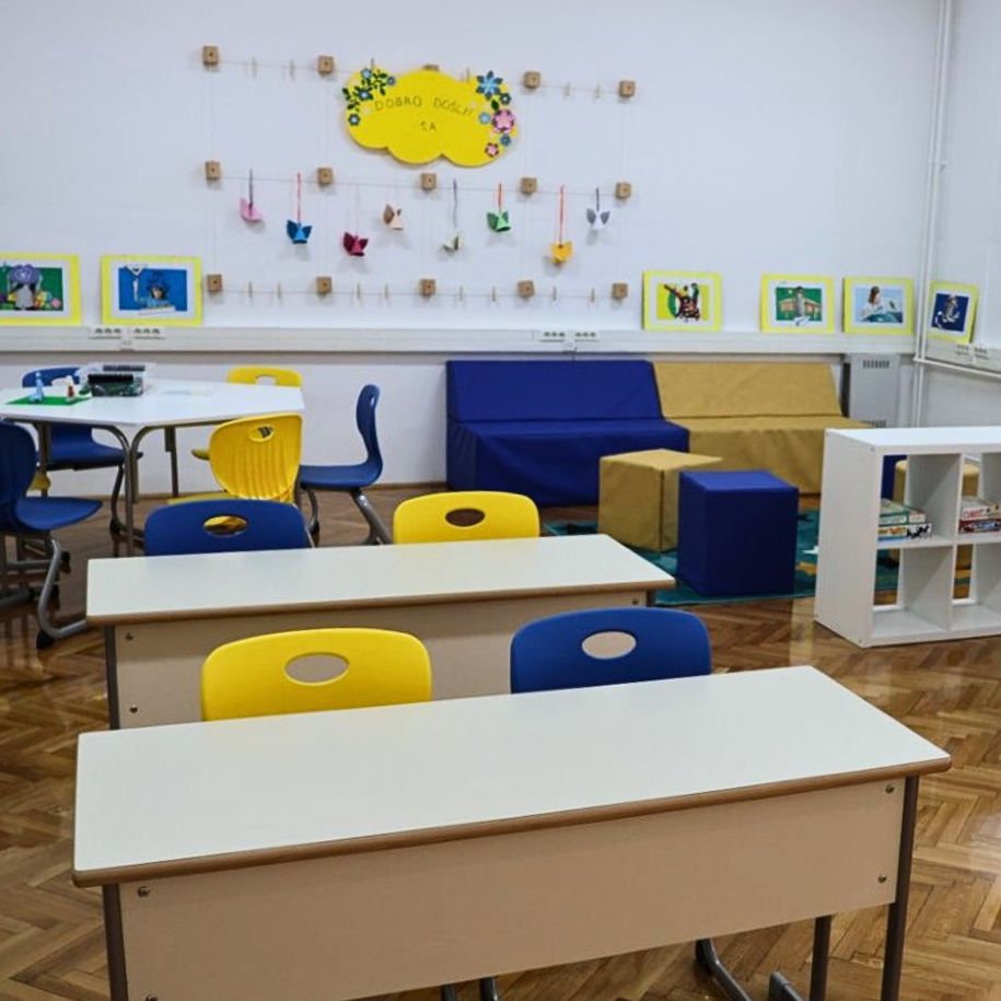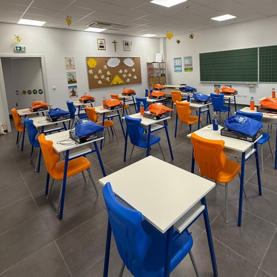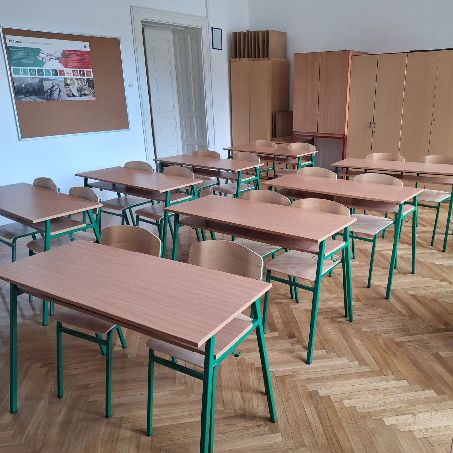 Prostorije OŠ "Tin Ujević" u Osijeku opremili smo našim školskim jednosjedima Klasik i radioničkim stolovima.