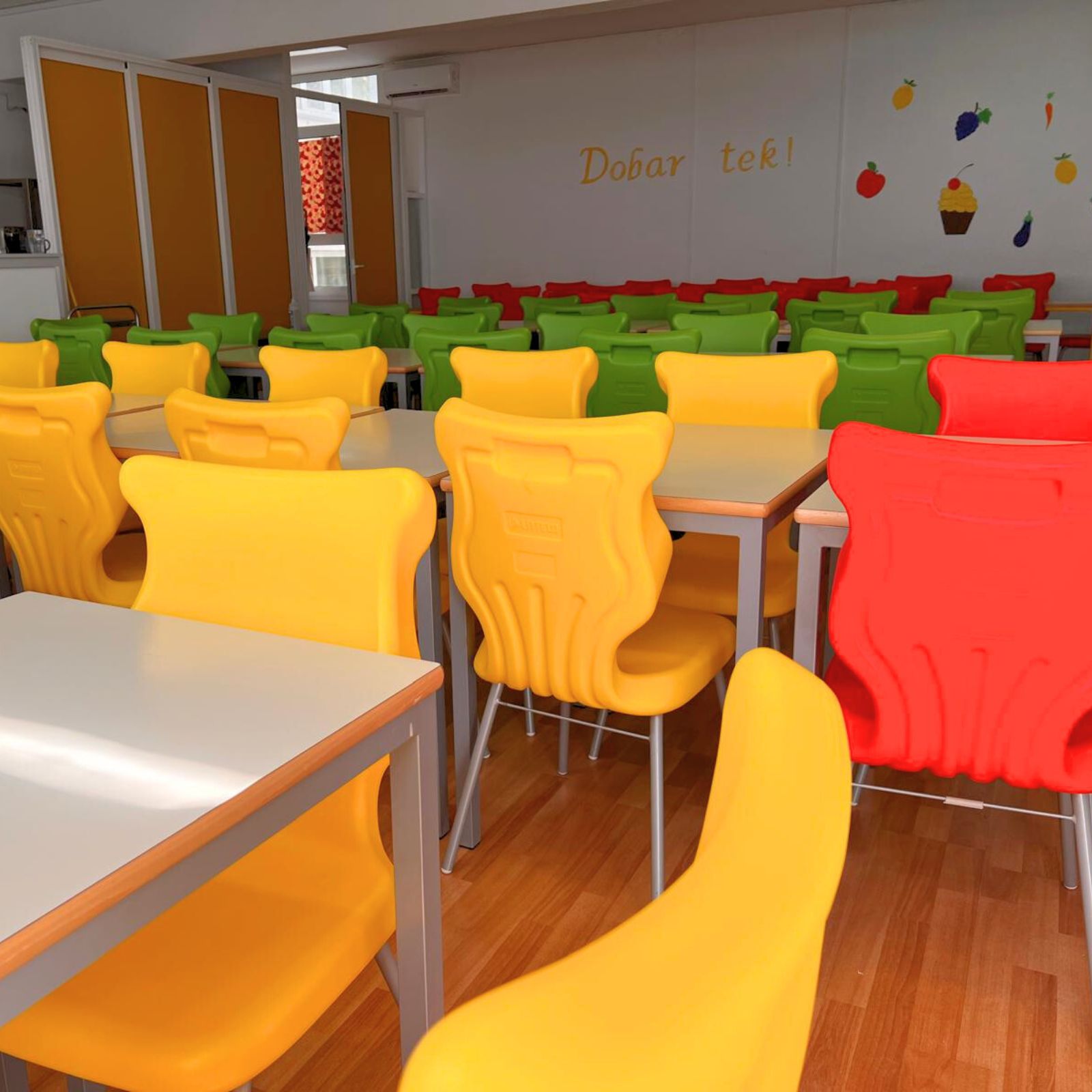 Sklopivi stolovi osigurali su uštedu prostora i veću funkcionalnost blagovaonice dok su istovremeno unjeli vedrinu modernim dizajnom i bojama.
