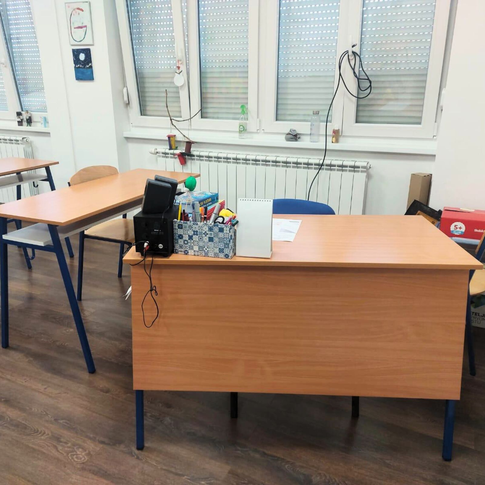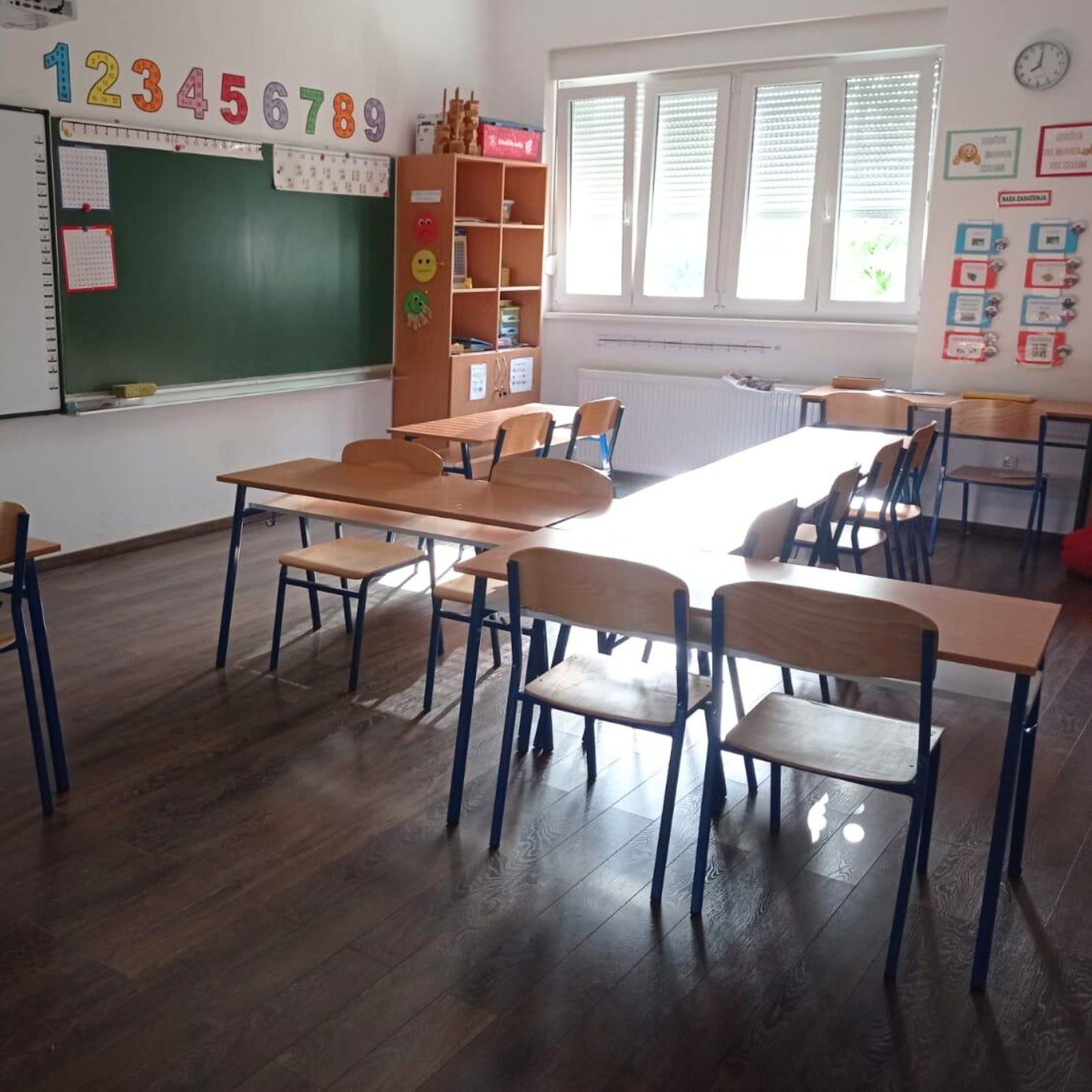 Prostor je organiziran tako da omogućava slobodno kretanje i interakciju. Učenici često rade u grupama, sjedaju u krugove ili se okupljaju oko zajedničkog stola kako bi surađivali na zadacima. Ova fleksibilnost u rasporedu potiče timski rad i razvija socijalne vještine.