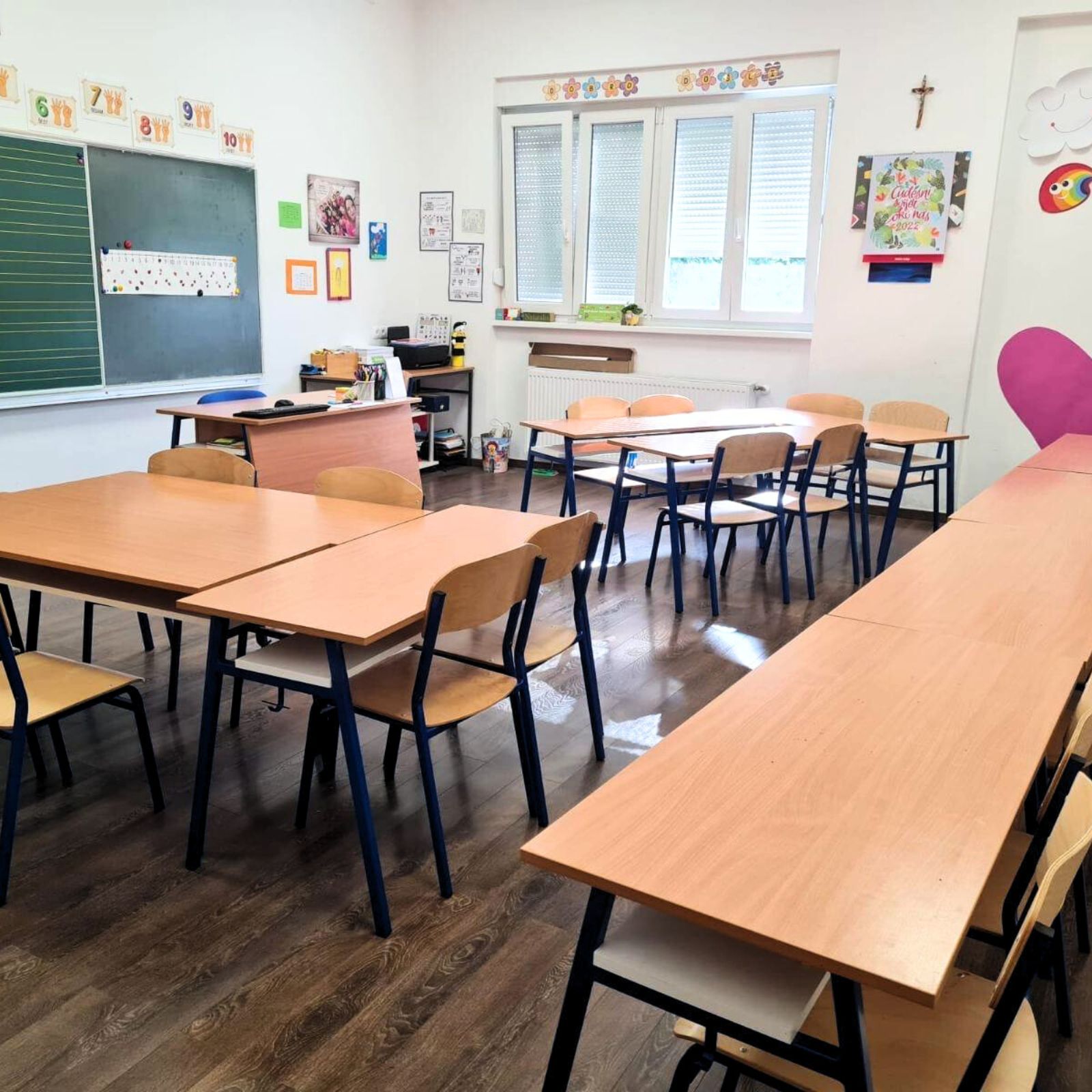 Raspored klupa u učionici može biti poput složenog mozaika, u kojem su učenici organizirani tako da potiču suradnju i zajedništvo. Ovisno o zadatku, klupe se preuređuju iz redova u krugove ili grupne formacije, omogućujući dinamičnu interakciju i poticanje kreativnog razmišljanja.