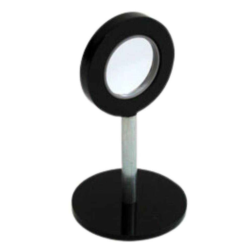 Leća je učvršćena na stabilnom stalku koji omogućuje precizno podešavanje položaja u odnosu na izvor svjetlosti ili predmet promatranja.