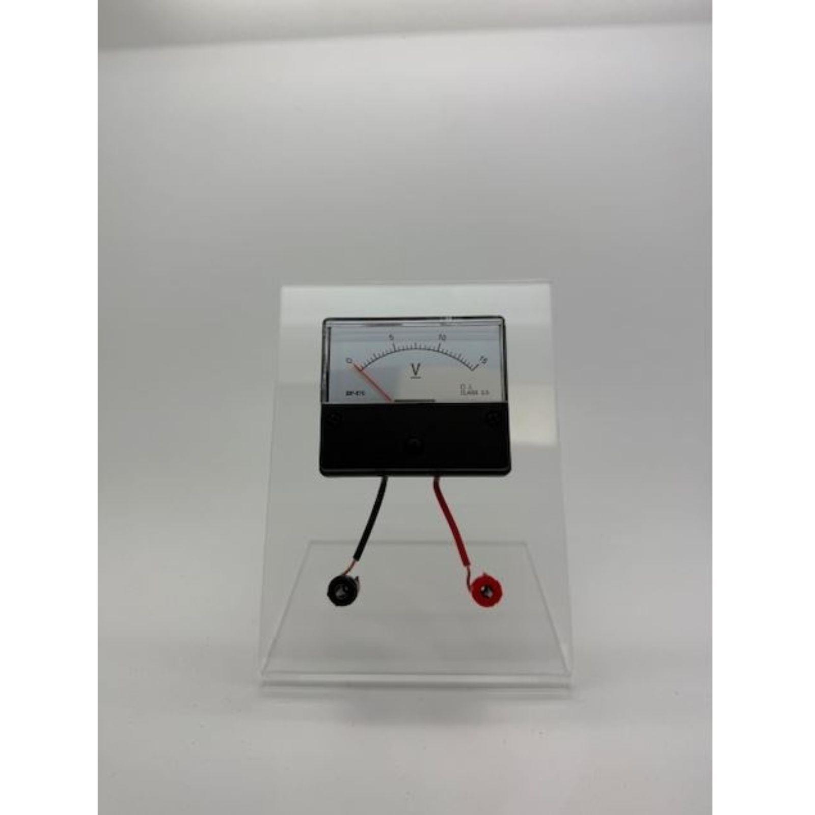 Školski voltmetar 0–15 V je mjerni instrument namijenjen preciznom mjerenju napona u električnim krugovima. Zahvaljujući jasno označenoj skali od 0 do 15 volti, ovaj uređaj omogućuje jednostavno i točno očitavanje vrijednosti napona, bilo da se koristi u obrazovne svrhe, laboratorijima, servisima ili hobističkim projektima.