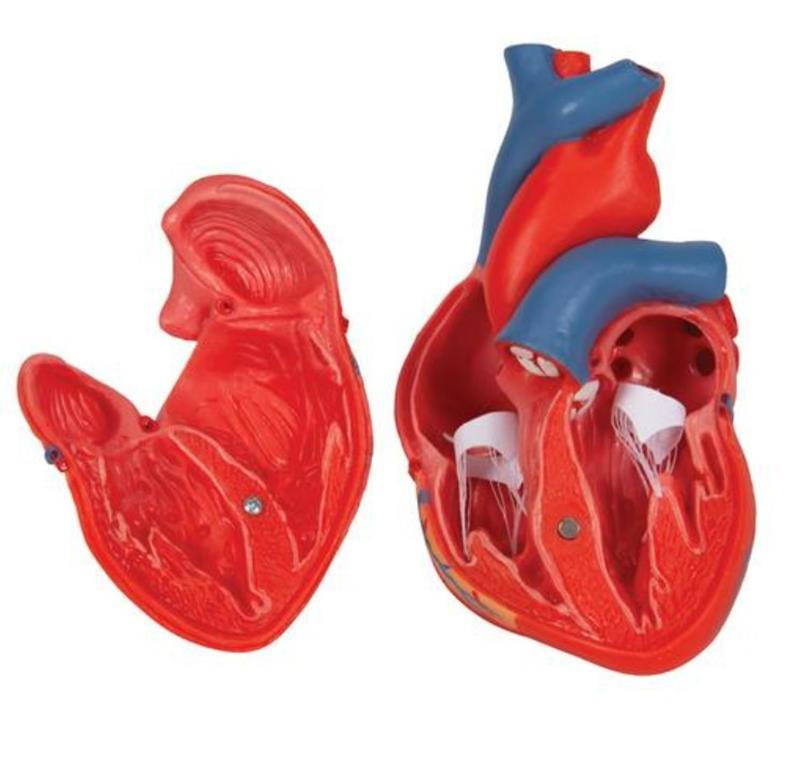 Vrlo detaljan model ljudskog srca od 2 dijela. Prednji srčani zid se može odvojiti kako bi se otkrile komore i zalisci unutar ljudskog srca.