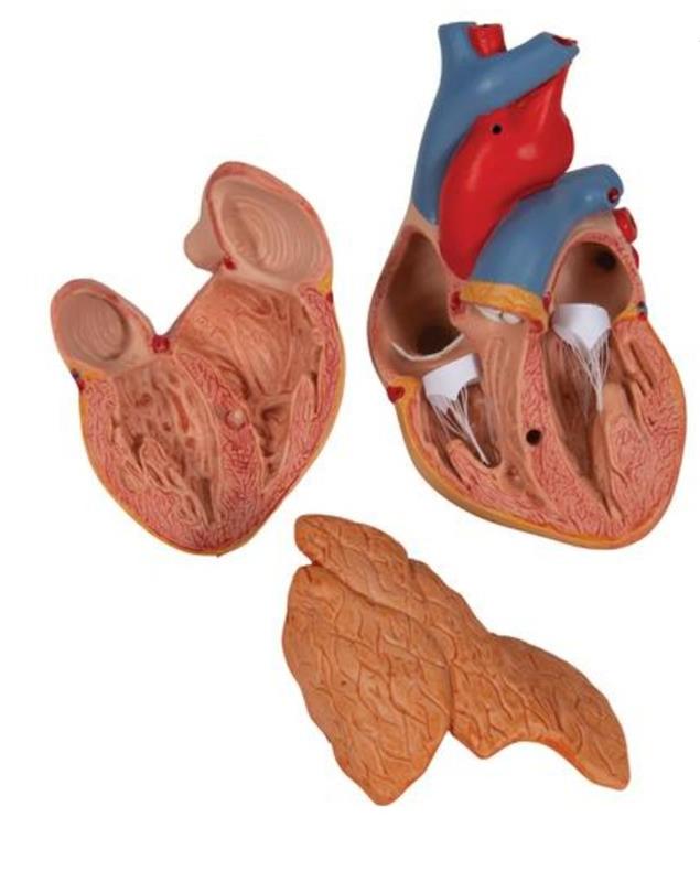 Iznimno detaljno srce iz 3 dijela. Prednji srčani zid se može odvojiti kako bi se otkrile komore i zalisci iznutra. Srce samo malo manje od prirodne veličine s izvrsnim anatomskim detaljima posvuda, uključujući timus.