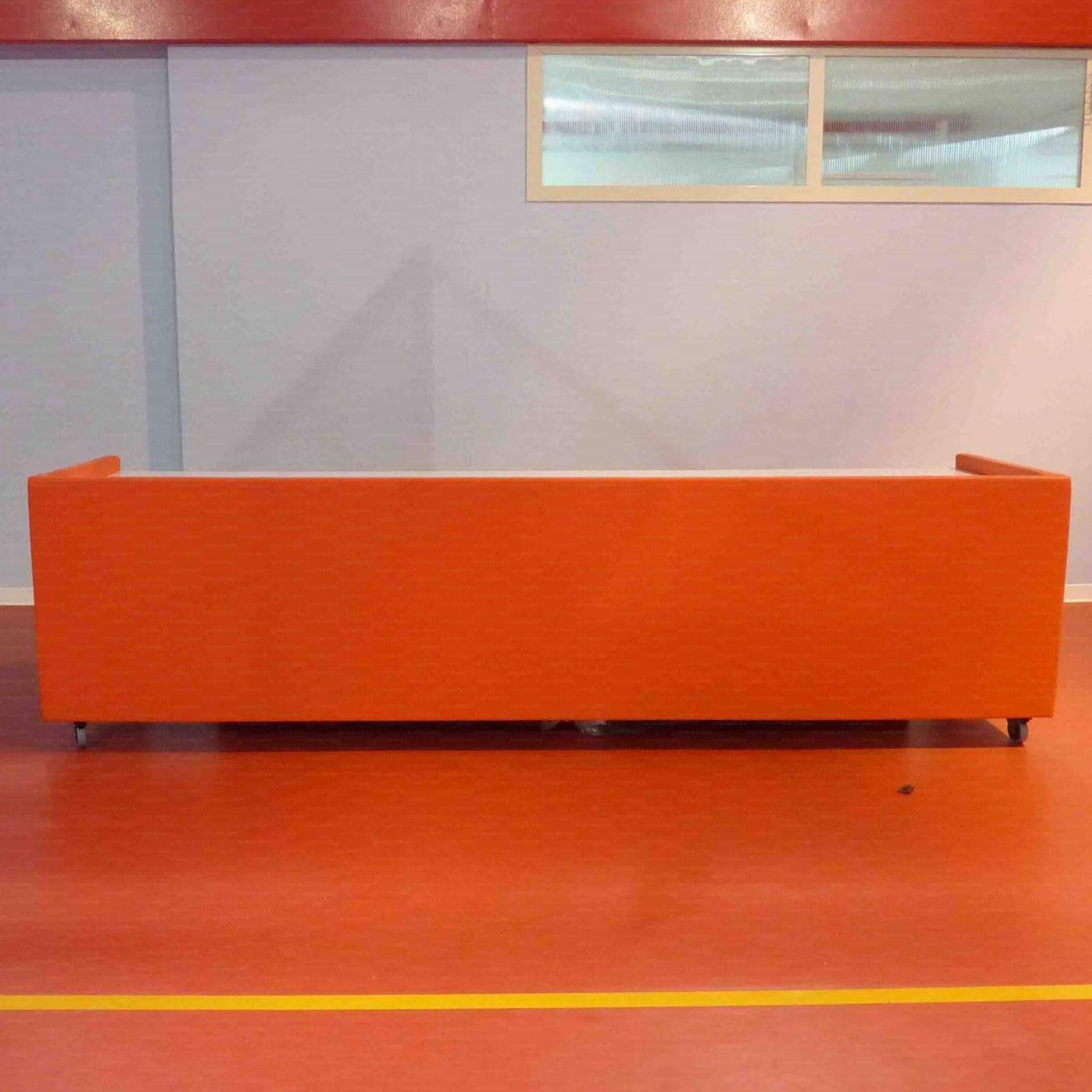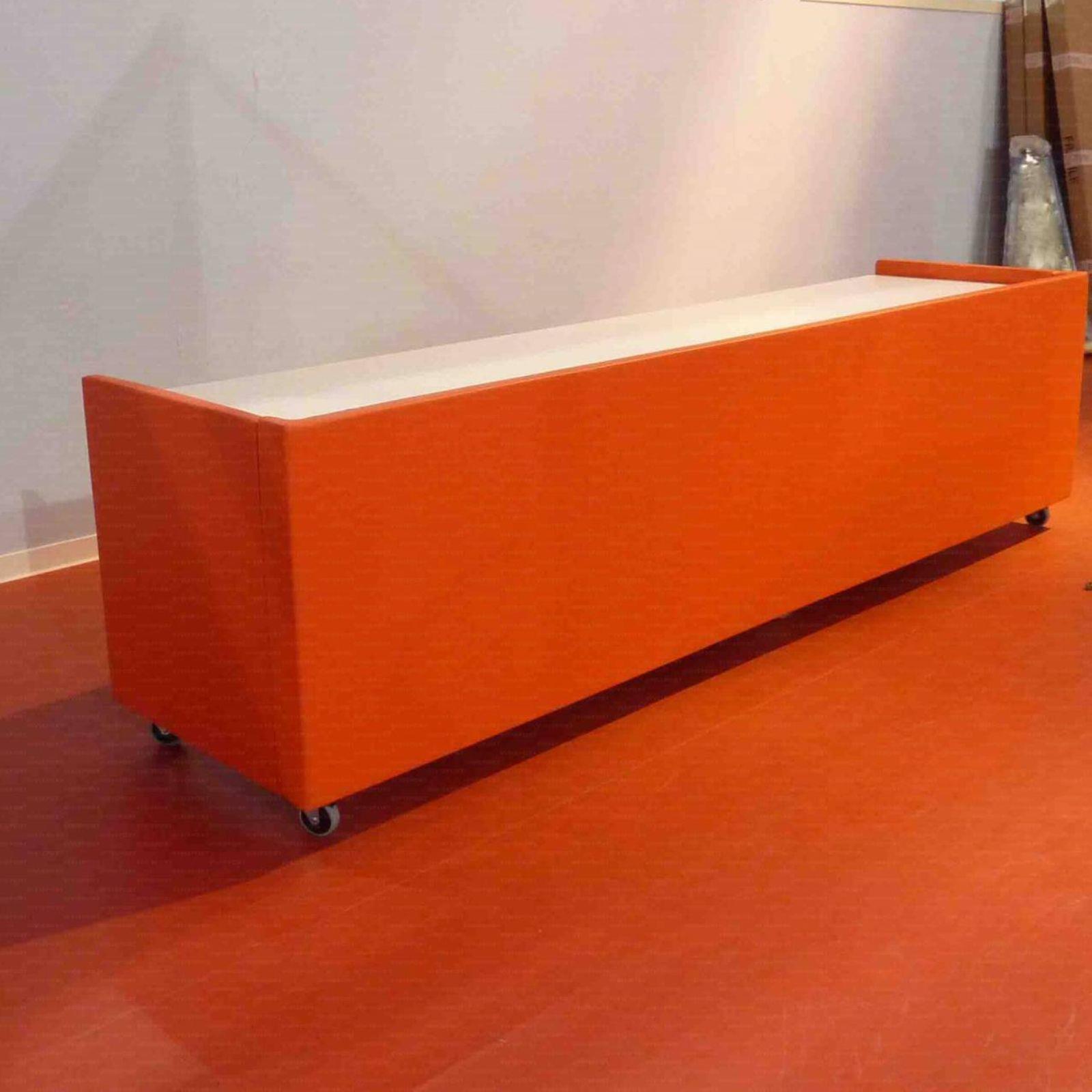 Zapisnički stol sa kotačima i kočnicom, aluminijske konstrukcije sa zasštitom. Dimenzije: 309 cm x 89 cm x 83 h cm.
